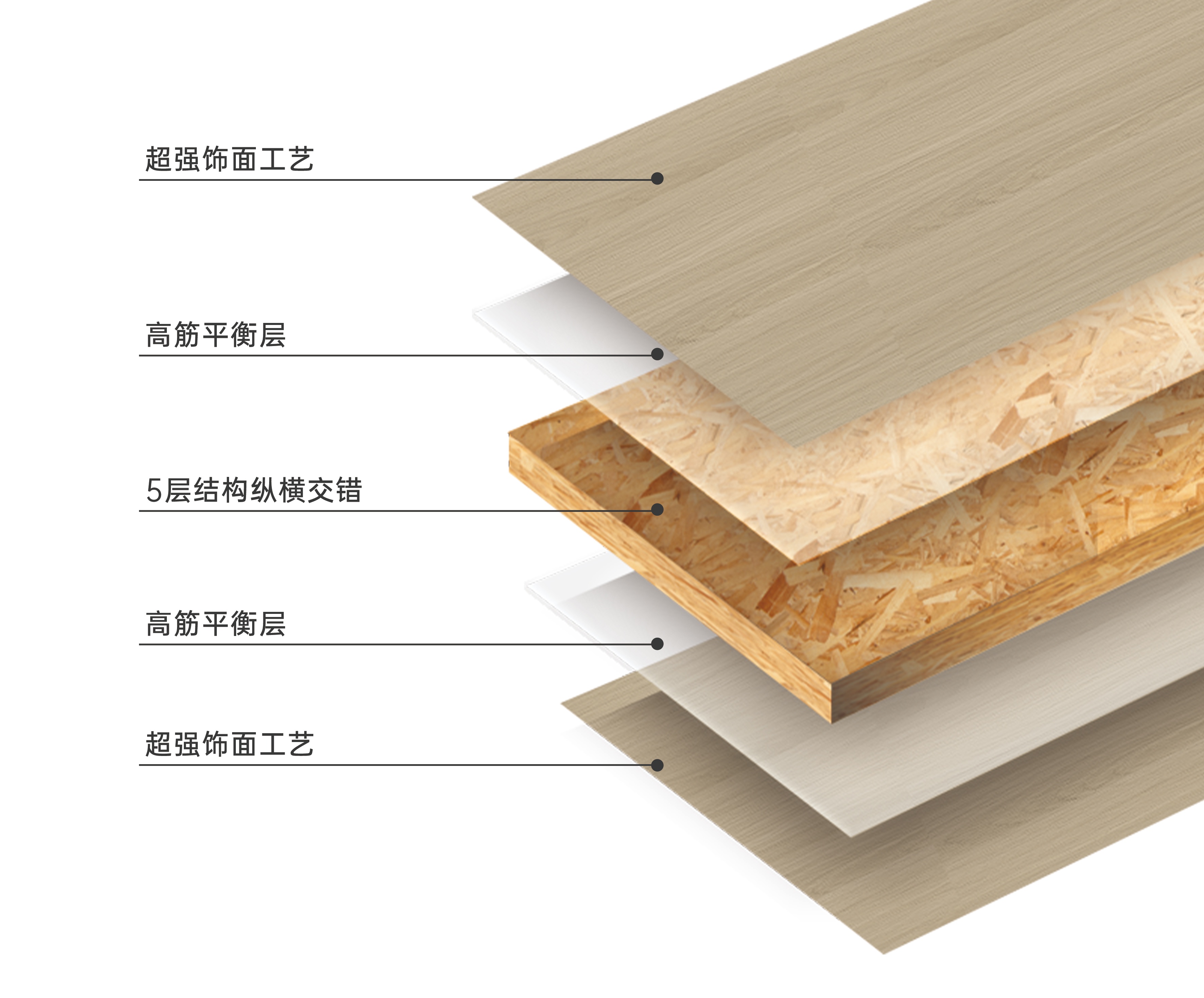 千山全能板(实木大刨片)采用德国进口迪芬巴赫连续平压线生产,均质刨片定向铺装,纵横交错排列,5层结构精细紧密,成就稳定抗变性能。